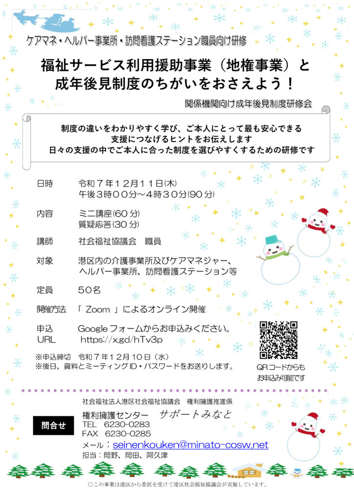 港区社会福祉協議会 > お知らせ > ケアマネ・ヘルパー事業所・訪問看護ステーション職員向け研修