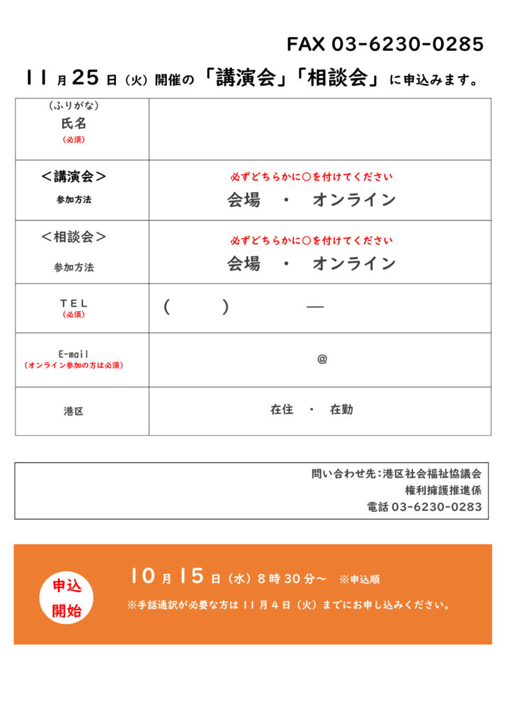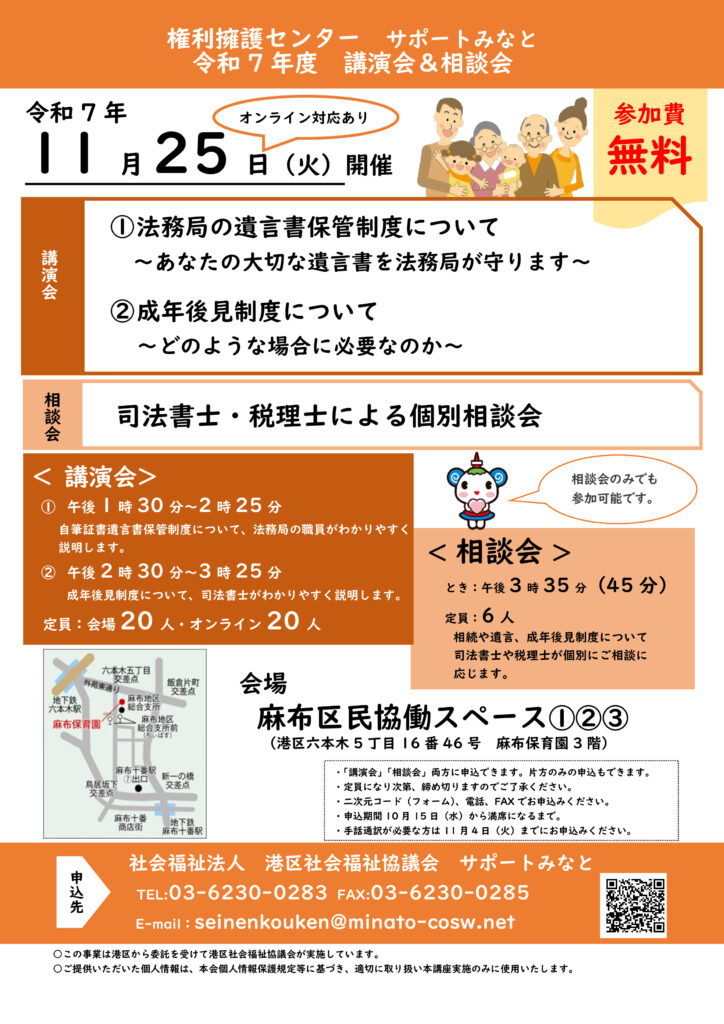港区社会福祉協議会 > お知らせ > 権利擁護センター サポートみなと「令和7年度 講演会 & 相談会」受付開始