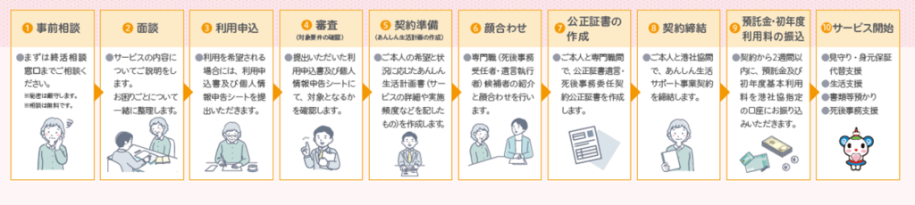 法定後見制度等への移行を支援し、あんしん生活サポート事業の契約は終了します。但し、死後事務委任契約や遺言公正証書の効力は残ります。