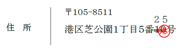 登録票などの書き間違えを訂正する際は、間違った部分に二重線を引き、申請者印を押印の上、正しい文言を記入してください。