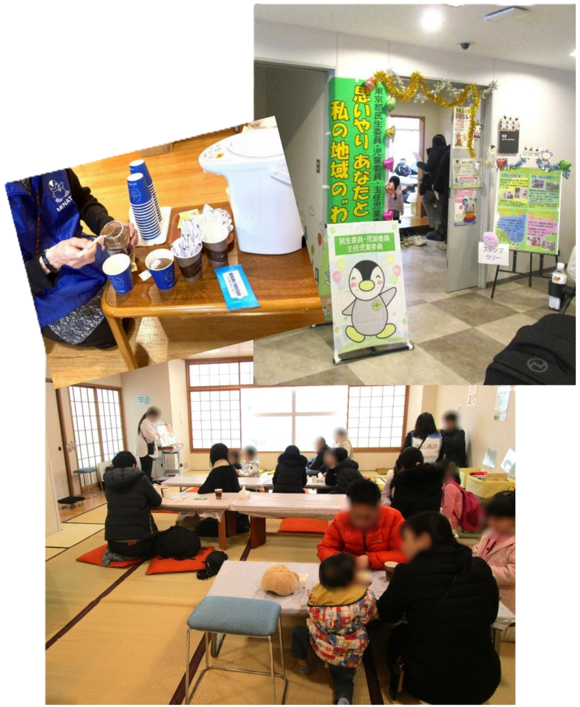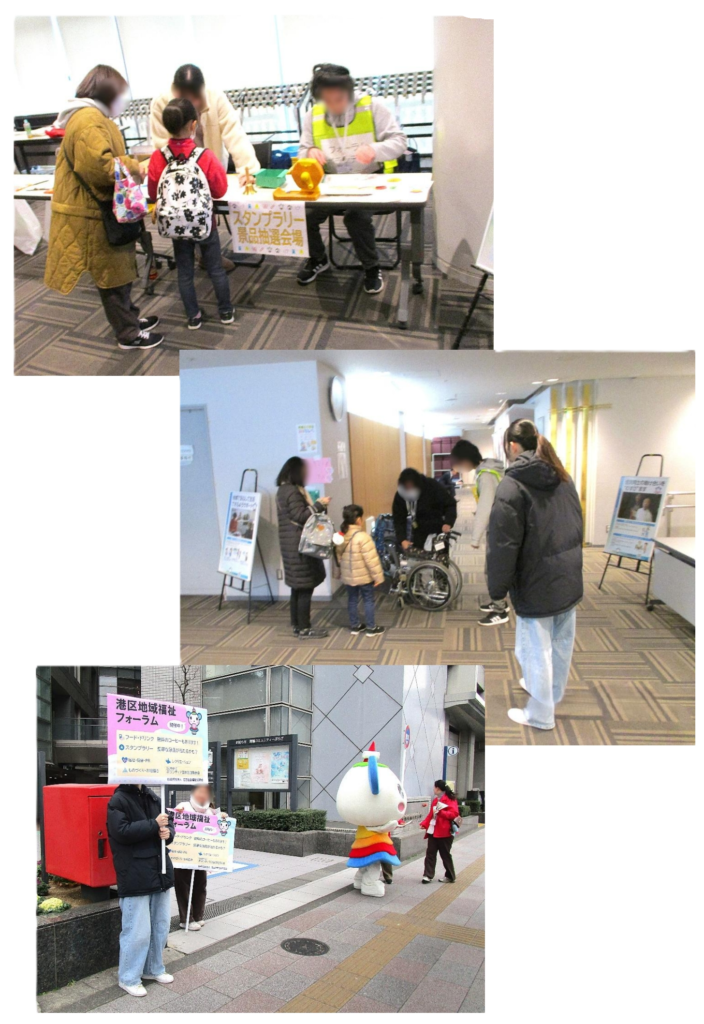 港区民生委員・児童委員協議会やチャレンジコミュニティ・クラブによる無料のカフェコーナー(協賛:コカ・コーラボトラーズジャパン(株)、キーコーヒー(株))、子ども食堂によるホットドッグ販売、福祉作業所による焼き菓子や物品販売、企業によるワークショップ、社会福祉法人や中高生プラザによるレクリエーションや骨の健康チェックの実施、高輪図書館によるおはなし会など、様々な団体と連携し、楽しい企画を通して各団体の活動の普及啓発や交流の促進を図ることができました!