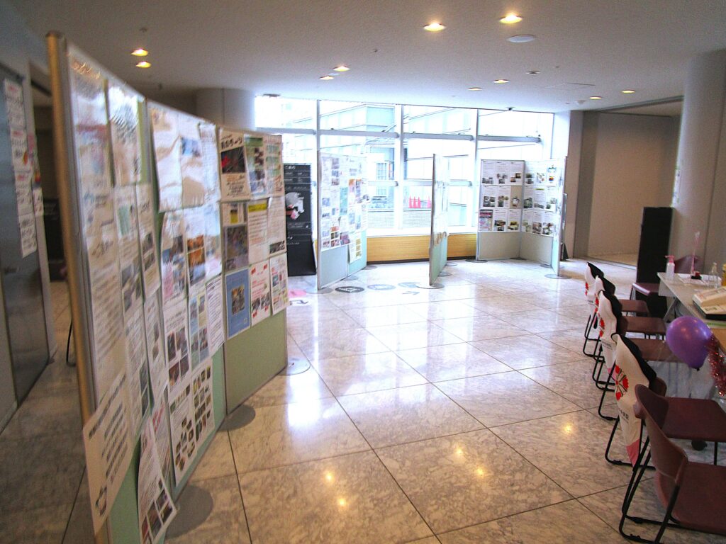 例年、ホールでは講演会やシンポジウム等の企画を実施していましたが、これまで以上につながりづくりや普及啓発を図るために検討を進め、地域福祉フォーラムの参加団体とボランティア団体との交流や、それぞれの企画の参加者へ地域活動の普及啓発を多方面で図ることを目的に、ボランティア団体活動発表会とコラボレーションするという取組をしました。