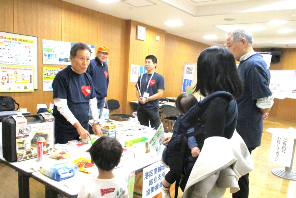 港区民生委員・児童委員協議会やチャレンジコミュニティ・クラブによる無料のカフェコーナー、赤十字奉仕団による応急救護体験、防災グッズ展示、企業によるワークショップ、ボッチャ体験など、様々な企画を通して各団体の活動の普及啓発を図りました。